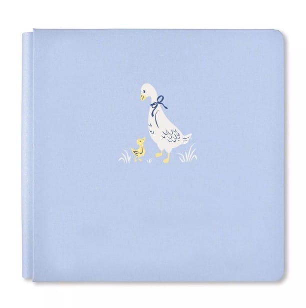 Document “firsts” of all kinds with the Welcome Baby Album Cover! This 12×12 blue baby album ensures you capture every new moment with icy blue bookcloth material and a design of a dressed-up goose smiling at its charming gosling. Its Flex-Hinge™ binding lets your pages turn easily and lay the album flat, while expanding to fit up to three packs of Refill Pages (not included). You’ll love it for photos of high chair hijinks, squishy smiles, playmat giggles, splashing in the bath and more.