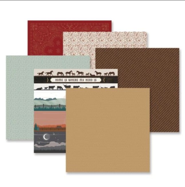 Make legen-dairy layouts for your countryside memories with the Wide Open Places Paper Pack! This country scrapbooking paper features designs with farm animals, lassos, windmills, and dainty florals in an earthy palette of teal, light teal, burnt orange, dark brown, tan and red.